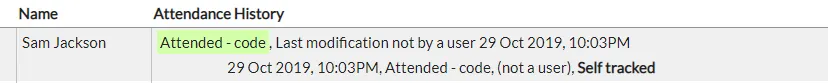 overview with attendance code entry , teachers are able to obtain unique codes for each attendance session they are teaching, and can provide those to students students can then enter the relevant code against their session to have their attendance recorded if students have not entered a code their attendance can be set to an absent status automatically after the session has finished teachers can have manual control over when the code for each session is available so for example they could open a 2 minute code entry window and provide the code to students with the expectation that they enter the code within that window making it more difficult to share the code with students who may not be in class the ip address of students can also be recorded with codes are entered obtaining and managing code entry attendance codes can be obtained from the course > attendance tab by clicking the codes option this opens a list of attendance codes for sessions for today and the following two days the closest session is indicated by a reddish colour manual time entry if the setting enable manual entry window control is enabled, then teachers have some options to control when the codes can be entered click the icon on the far right of a session as indicated below note this is not available if the setting to enable manual control is not set to yes default time entry window this is the default and the time entry window is determined by the accessible minutes before start and accessible minutes after start settings manual control codes can only be entered after you click the 'start' button and before the timer has counted down or you click the 'stop' button this allows you to allow code entry for a 2 minute period (or any number of minutes) from when you make the code available, and you have the option to stop before that 2 minutes has finished you can stop earlier and start again in the screen below you can see a 2 minute code entry window which has started and is counting down specify time window specify the from and until times in advance, and students will only be able to enter codes during that time window disabled this option disables code entry for the selected session student code entry student's may access code enntry screen from their student interface a list of sessions across all courses for the current day can be selected from, with today selected by default there are settings which determine how many days sessions can be shown for students may be able to see their sessions for past days and future days, or just for the current day depending on configured settings, students may be able to enter a code against a session, depending on whether the current time is before or after the start of the session and by how many minutes before or after this is affected by the kind of code entry the teacher may have chosen when a code is successfully entered the student will have an attended or late status recorded for the session depending on the configuration common questions can i see when a student entered a code? open the attendance session history you can see the time a code was entered the note self tracked indicates the code was entered by the student if ip address tracking is enabled the note will include the student's ip address can i regenerate codes for a session? currently this is not possible students who do not enter a code are not counted as absent an absent status can be applied automatically for students who do not enter a code this is not enabled by default and must be enabled by an administrator refer to the heading absence code scheduling below faculty members do not need to manually enter students as absent administration only system administrators can access the attendance codes administration area, from admin > plug ins > attendance codes attendance statuses for code entry we recommend that special attendance statuses be set aside for use with code entry by default there will be two statuses named 'absent code'' and 'attended code' both of which are hidden from selection and configured to be applied for attendance code entry using these special statuses allows you to differentiate between attendance recorded manually and attendance recorded automatically by code entry take care changing the names of these statuses because there are settings which need to match these attendance status names checking effective settings the currently applied settings are shown on the left of the administration page check the settings here to verify that what you have configured is effective if a change to settings is not reflected on this page, edit and save the setting again absence code scheduling if you would like an absent status to be applied for students who did not successfully enter a code, you must schedule when this is applied this is configured at admin > plug ins > attendance codes under the absence code scheduling heading this could be scheduled to occur every hour, a few times each day or daily you may prefer to leave attendance as blank until the end of the day or you may prefer to have blank attendance replaced with an absent status fairly soon after each session finishes in which case you would want to schedule this to run frequently during the day when this schedule runs, it will look back over the last 24 hours and apply the absent status as necessary this is affected by a few settings check the settings section to make sure the absent status will be applied as you require attendance codes settings settings can be edited at admin > plug ins > plug in settings > attendance codes
